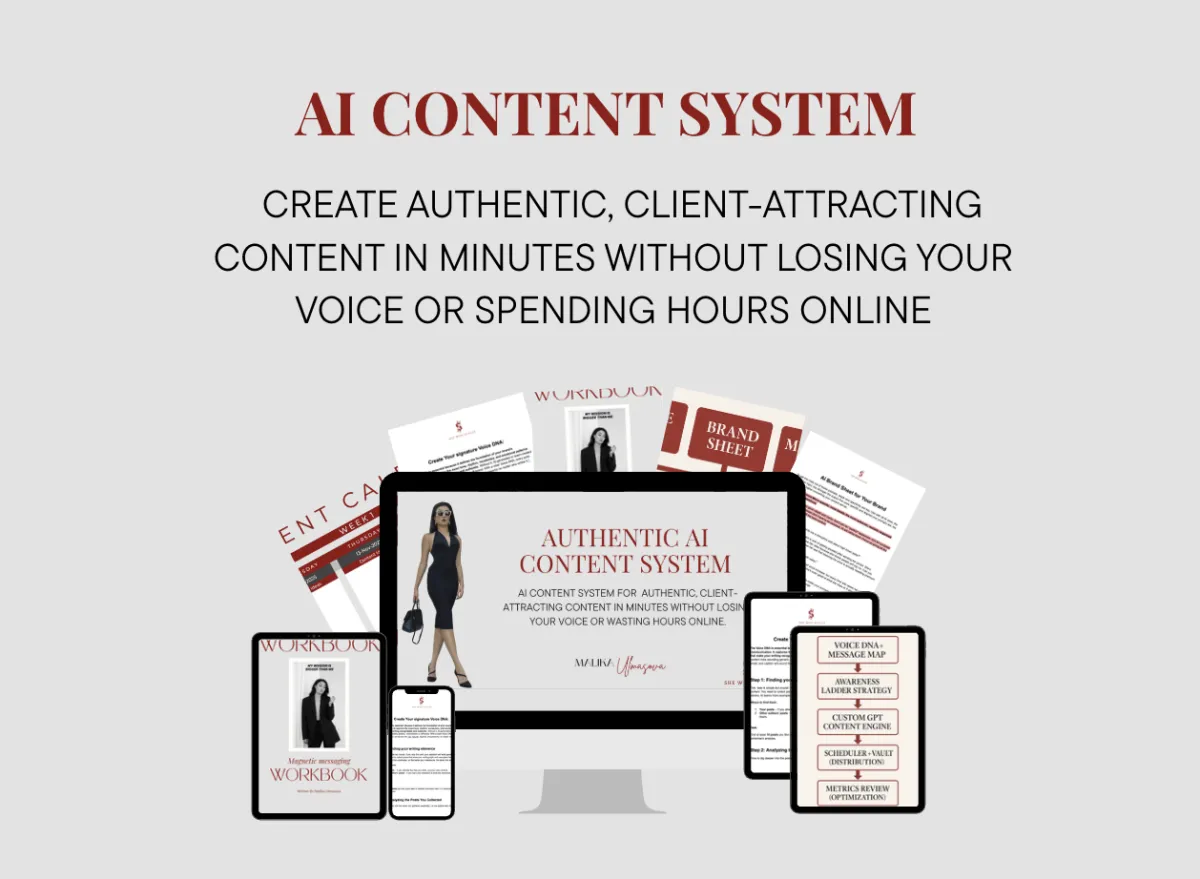"The Authentic AI Content System finally gave me clarity, not just ideas, but a real structure. For the first time, I know exactly what to do step by step: 1) Train my AI in my voice, 2) Map my message, 3) Automate my visibility. My content now flows effortlessly, my message is consistent, and I’m not second-guessing every move. Malika didn’t just give me tools, she changed the wayI show up and I run my business."